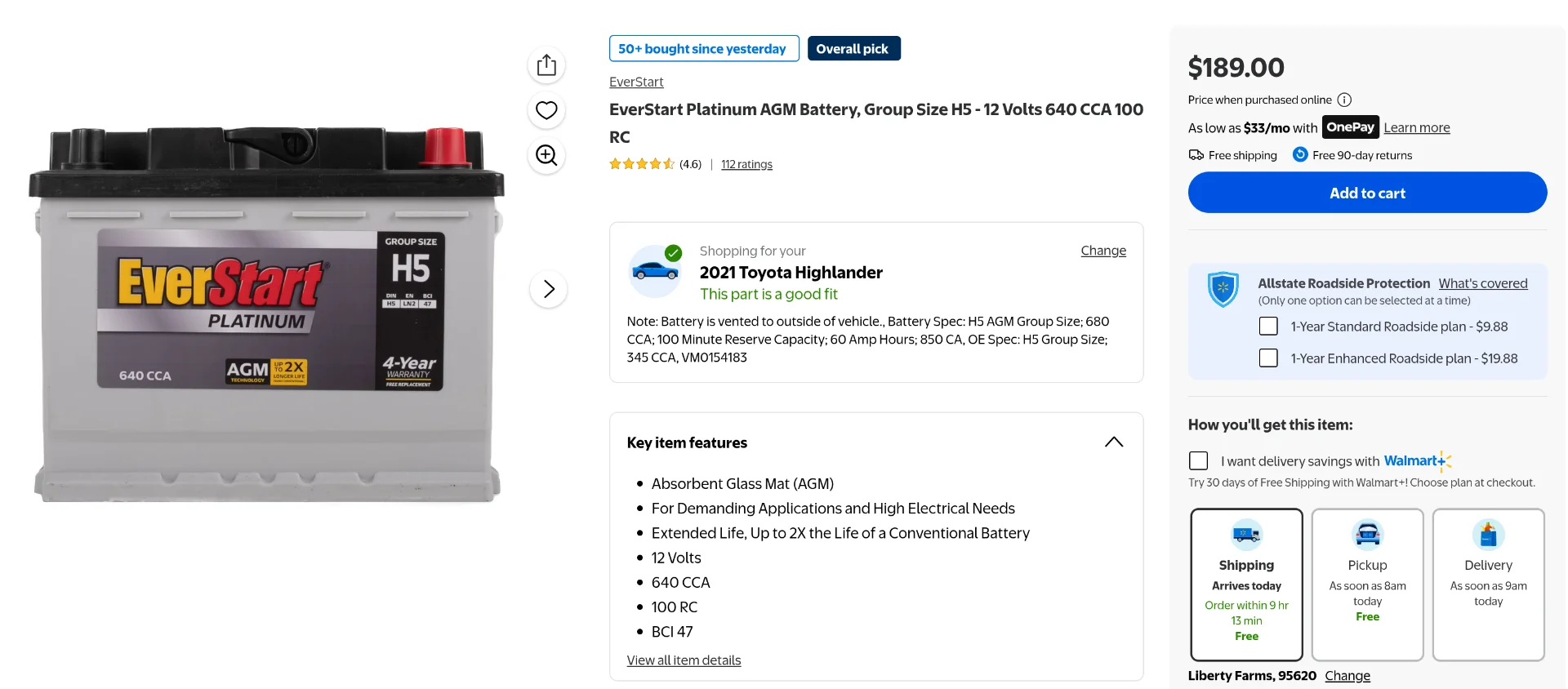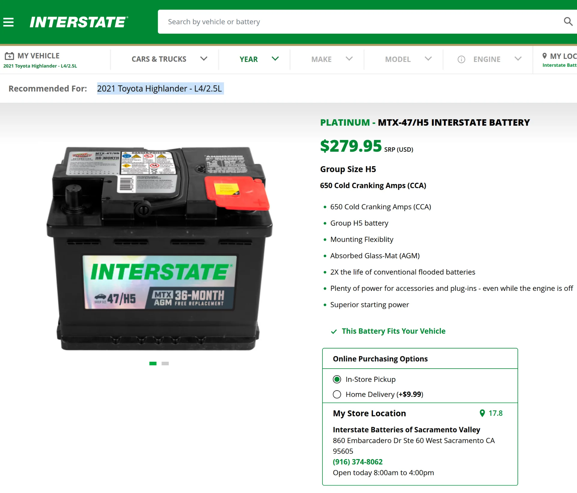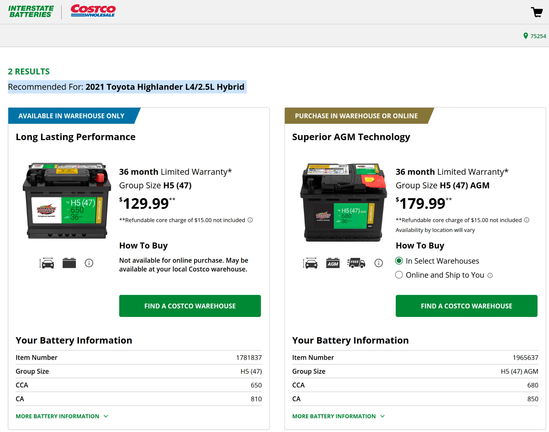 I looked up the cost for Interstate H5 (47) AGM for 2021 Toyota Highlander Hybrid;