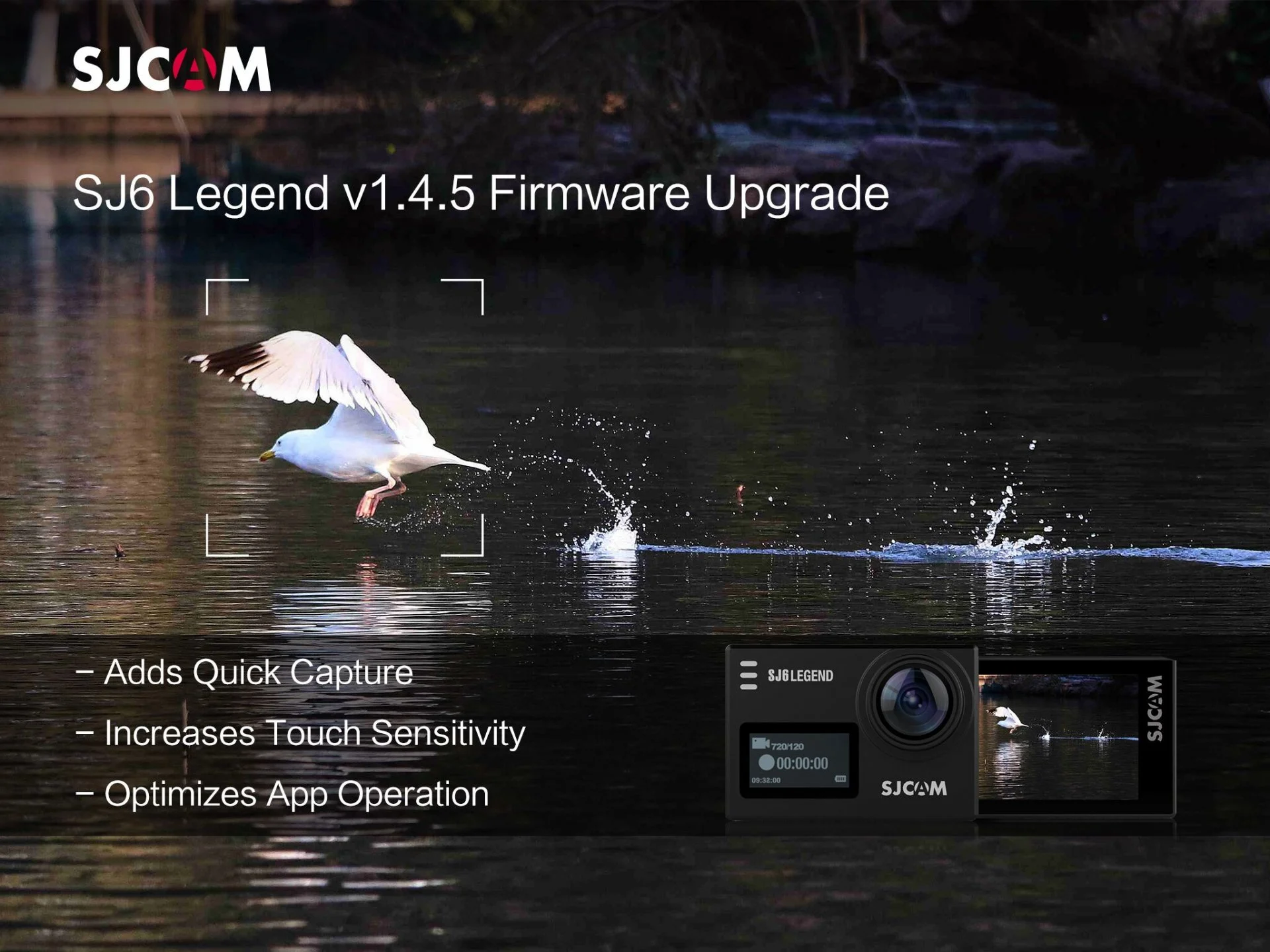 SJ6 Legend 4k action camera has yet another major firmware upgrade in version v1.4.5. This latest version improves the image quality, screen responsiveness and operation with app. In addition, v1.4.5 adds Quick Capture for photos and video. There will be many more upgrades coming. Thank you for your patience.
